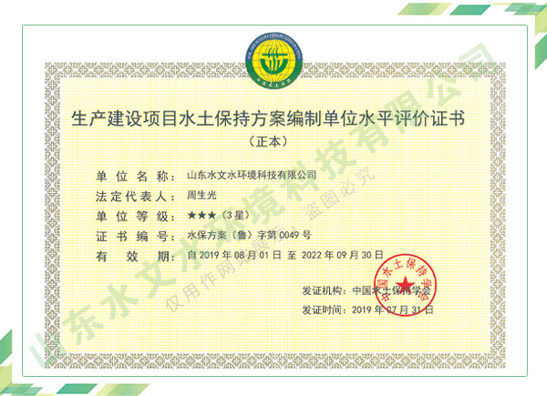 公司擁有水利工程設(shè)計(jì)、水土保持、水文水資源調(diào)查評價、水資源論證、建設(shè)項(xiàng)目環(huán)境影響評價、市政公用工程施工總承包、水利水電工程施工總承包、電子與智能化工程專業(yè)承包等資質(zhì),2017年通過質(zhì)量管理體系、環(huán)境管理體系、職業(yè)健康安全管理體系認(rèn)證;2020年被評為國家級高新技術(shù)企業(yè),同年被中國水利企業(yè)協(xié)會推薦為第一批“合同節(jié)水服務(wù)企業(yè)”;2021年被山東省、濟(jì)南市評為 “專精特新”中小企業(yè)。業(yè)務(wù)范圍涉及水利工程設(shè)計(jì);節(jié)水設(shè)計(jì)、改造、水平衡測試;山洪災(zāi)害調(diào)查;城市水資源調(diào)查評價;建設(shè)項(xiàng)目水土保持方案編制、監(jiān)測、驗(yàn)收、水土保持規(guī)劃;水安全保障規(guī)劃、建設(shè)項(xiàng)目水資源論證、規(guī)劃水資源論證;建設(shè)項(xiàng)目環(huán)境影響評價;入河排污口論證;防洪影響評價;市政公用工程施工、水利水電工程施工、電子與智能化工程施工等。